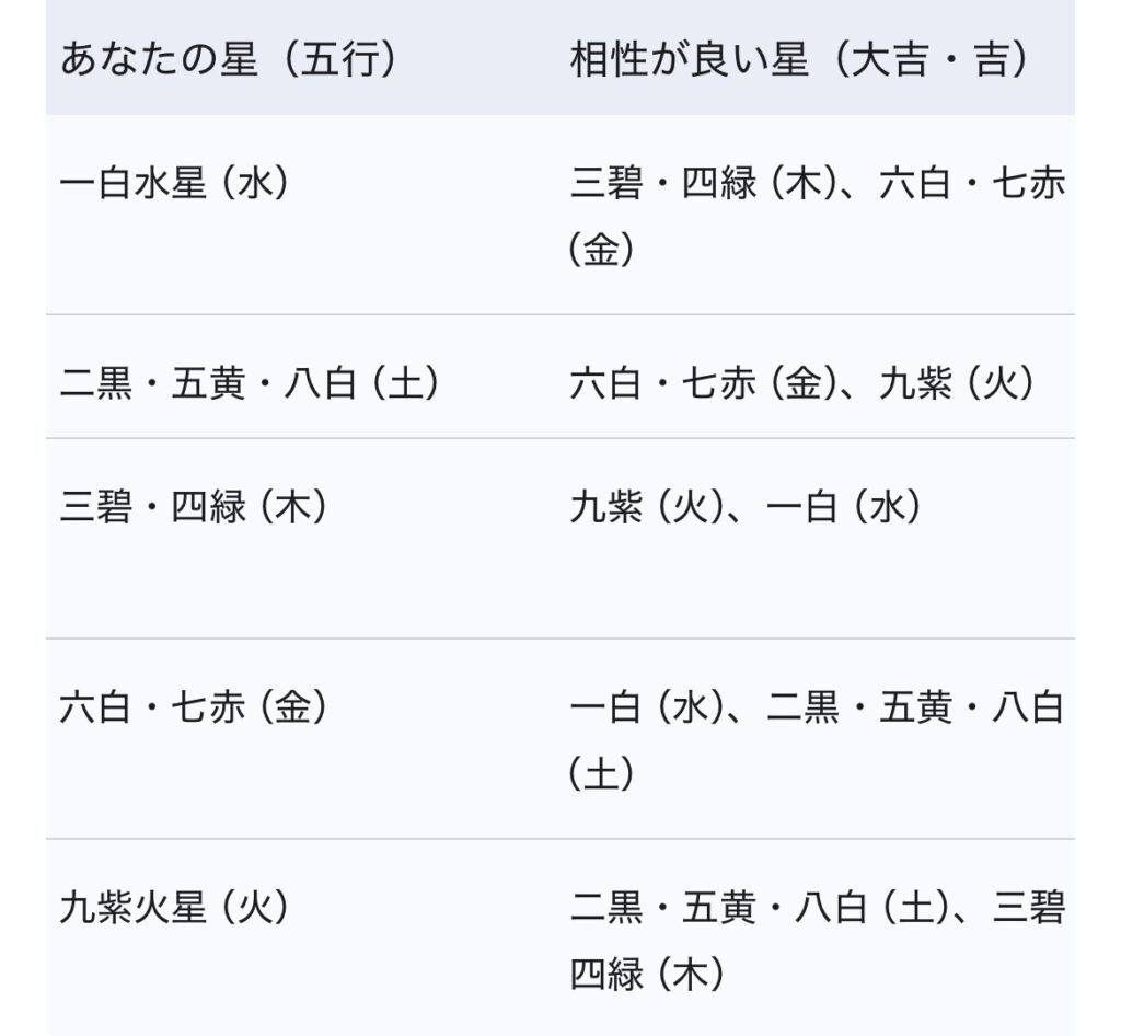 九星気学における相性は、五行の法則である五行説をベースに判断します。